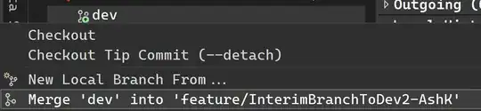 Right click dev and click Merge 'dev' into 'feature/InterimBranchToDev2-AshK'