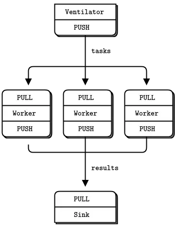 It looks like the "issues" here are described in the same part of the 0MQ guide you got the image from : push/pull ventilator example