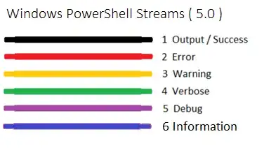 At this point only the error object was written to console, the output System.IO.DirectoryInfo object is in $outputOnly, and the warning and verbose messages are in $VerboseAndWarning. You can then pull them out by filtering with a where-object clause.