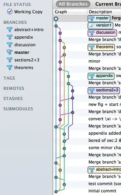 • I would also suggest splitting each section into a different branch and focus only the section corresponding to the branch that you're on. Spawn a branch when you create a new section or dummy sections when you make your initial commit (your choice, really). Resist the urge to edit a different section (say, 3) when you're not on its branch. If you need to edit, commit this one and then checkout the other before branching. I find this very helpful because it keeps the history of the section in its own branch and also tells you at a glance (from the tree) how old some section is. Perhaps you've added material to section 3 that requires tweaking to section 5… Of course, these will, in all probability, be observed during a careful reading, but I find it helpful to see this at a glance so that I can shift gears if I'm getting bored of a section.