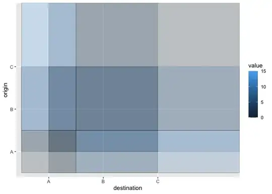 I'm trying to create a heat map for an OD matrix, but I wanted to scale the rows and columns by certain weights. Since these weights are constant across each category I would expect the plot would keep the rows and columns structure.