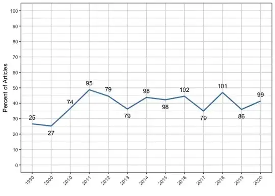 but it did not work with ggplot, I got this error, although the object definitely is inside of MIA_YEAR: (Error in diff(y = Percent) : object 'Percent' not found)