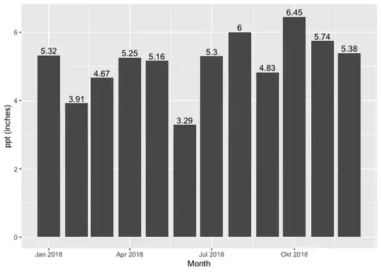 summarise(`ppt (inches)` = sum(`ppt (inches)`, na.rm = TRUE)) |>