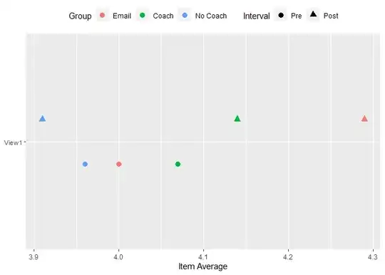 I am having an issue with trying to dodge points only by the color aesthetic when I am also using another aesthetic for shape. When I add the option to dodge, it dodges the points such that each shape+color option is dodged. Is there a way to specify the dodge such that a single aesthetic is being dodged? The only way I can think is to have two datasets for two separate geom_point's where the shape is manually set but unsure how that might work with the legend.