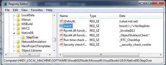 I'm getting debugger errors when using the boost serilazation library. To fix these I am trying to get Visual Studio 10 to skip the debugging the boost library, after som reading I found out how this coult be achived but the solution somehow doesn't work. Here is a picture of the regedit.