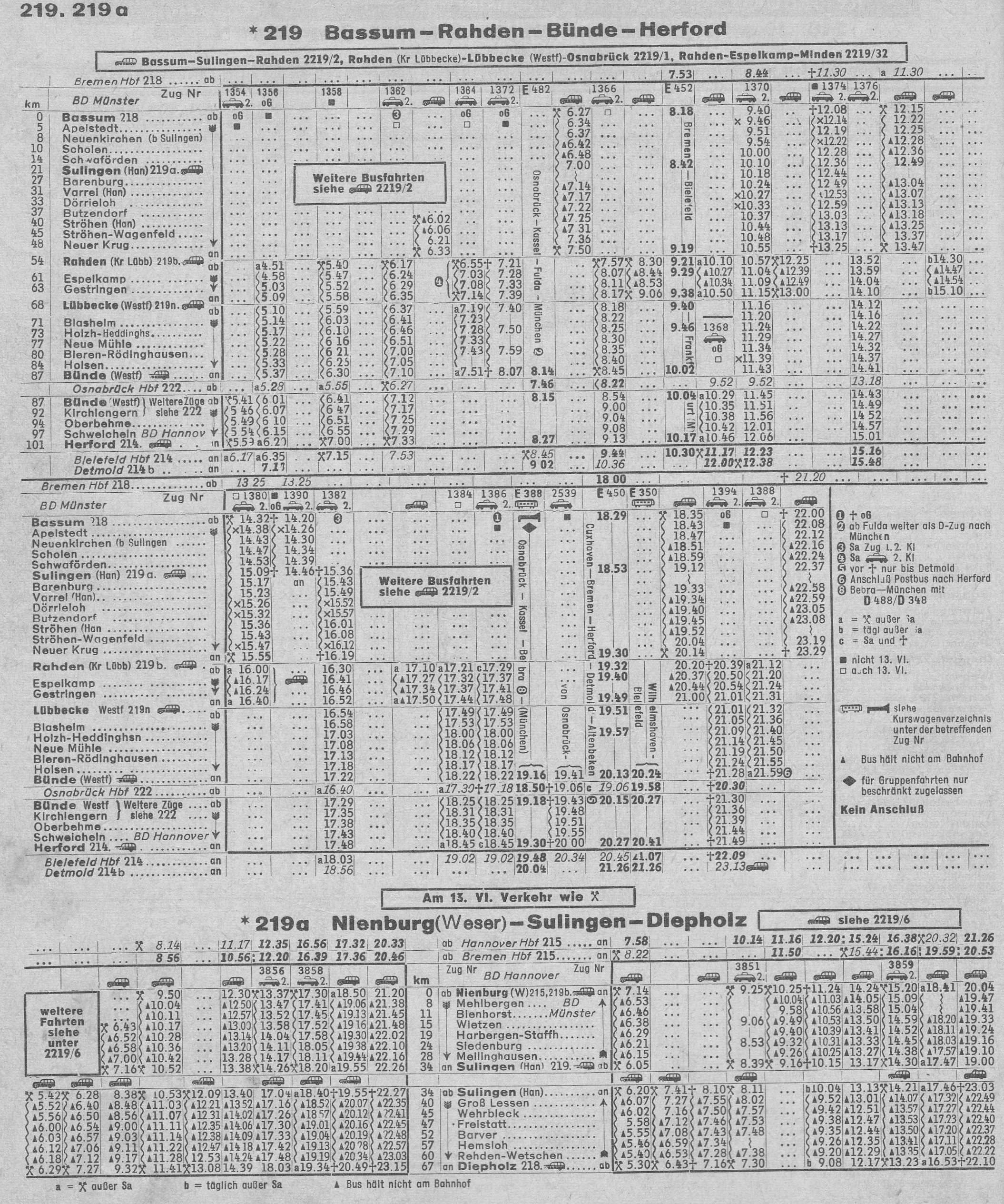 - Fahrplan Sommer 1968 mit Eilzugverbindungen München–Osnabrück, Bielefeld–Wilhelmshaven, Frankfurt (M)–Bremen, Altenbeken–Cuxhaven und Herford–Osnabrück auf www.aebb.de, abgerufen am 17. April 2021