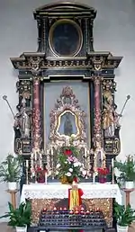 | Unterfrauenhaid | Burgenland | Wallfahrtskirche Mariä Himmelfahrt | Bild | 1629 | Der Hochaltar hat einen freistehenden Tabernakel mit einem Gnadenbild der Hl. Maria nach dem Vorbild der Schwarzen Madonna von Tschenstochau | ![]() |