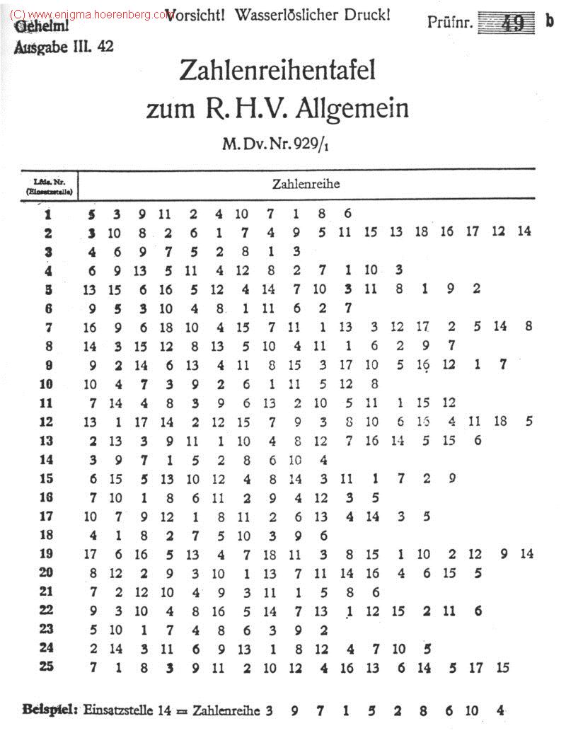 - Zahlenreihentafel zum R.H.V. Allgemein