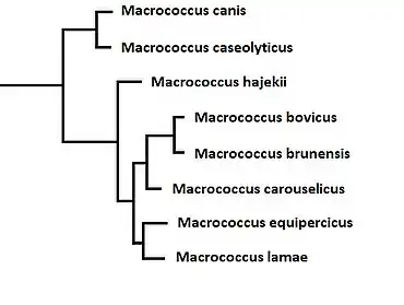- Macrococcus caseolyticus (Schleifer et al. 1982) Kloos et al. 1998