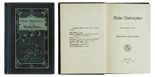 Fontane, Theodor: Meine Kinderjahre. Autobiographischer Roman. Berlin: F. Fontane & Co. 1894, 321 S., Erstausgabe. Original-Verlagseinband.