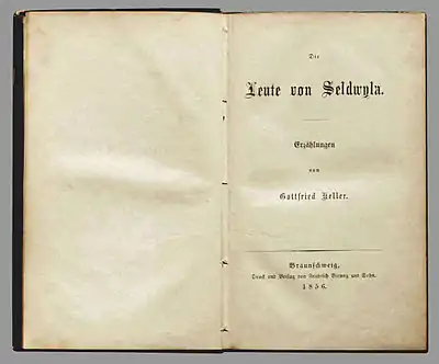 Keller, Gottfried: Die Leute von Seldwyla. Erzählungen. Braunschweig: Vieweg 1856, 523 S., Erstausgabe.