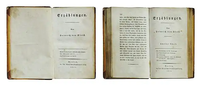 Berlin: Realschulhandlung 1810, 342 S., Klein - Oktav. Inhalt: Michael Kohlhaas. Die Marquise von O. Das Erdbeben von Chili.